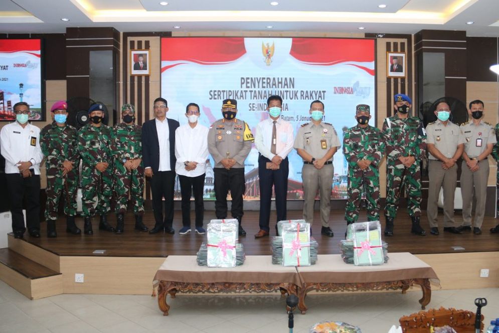 BATAM (sijori.id) -- Sebanyak 1.387 sertifikat tanah kembali diserahkan untuk masyarakat Batam seiring kegiatan penyerahan sertifikat tanah untuk rakyat se-Indonesia secara virtual, Selasa (5/1/2021).