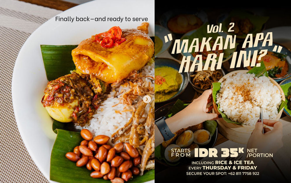 BATAM (sijori.id) - ARTOTEL Batam kembali menghadirkan program “Makan Apa Hari Ini? Vol. 2”. Program ini menyajikan menu Nusantara dengan konsep kasual dan harga terjangkau. Paket makanan tersedia setiap Kamis dan Jumat dengan harga mulai Rp35.000 net per porsi, termasuk nasi dan es teh.