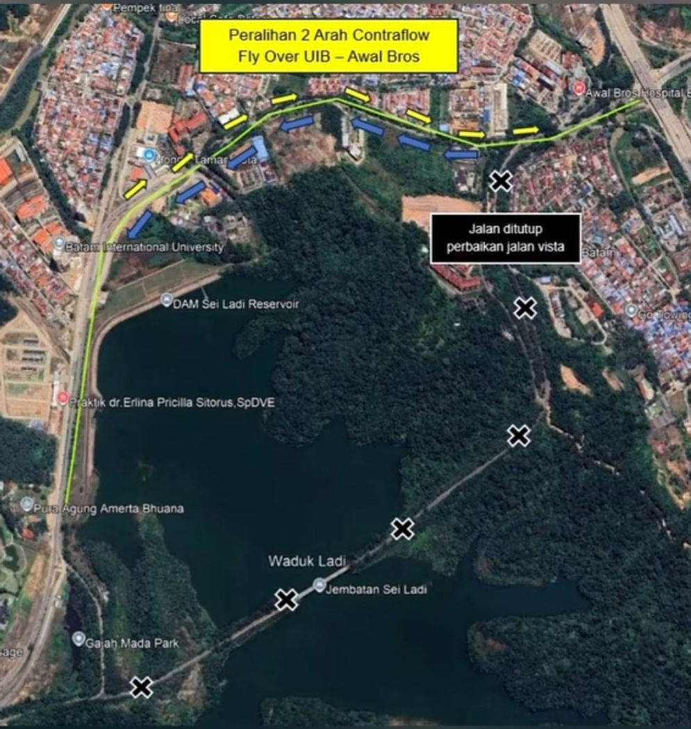 Selama periode tersebut, arus kendaraan akan dialihkan melalui jalur alternatif menuju kawasan Tiban dengan penerapan skema contraflow ke arah Fly Over Sei Ladi–Universitas Internasional Batam (UIB). Pengalihan ini, menurut BP Batam, telah disiapkan untuk menjaga kelancaran mobilitas meski terjadi penyempitan kapasitas jalan.