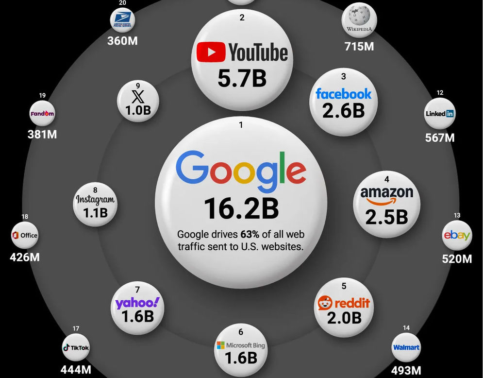 AMERIKA (sijori.id) - Persaingan di jagat maya Amerika semakin panas. Namun untuk urusan singgah pertama kali saat membuka internet, Google masih jadi juaranya. Pada Juli 2025, raksasa pencarian itu mencatat 16,2 miliar kunjungan. Angkanya bukan main—naik lebih dari 3 persen dari bulan sebelumnya dan hampir tiga kali lipat trafik YouTube yang berada di posisi kedua.