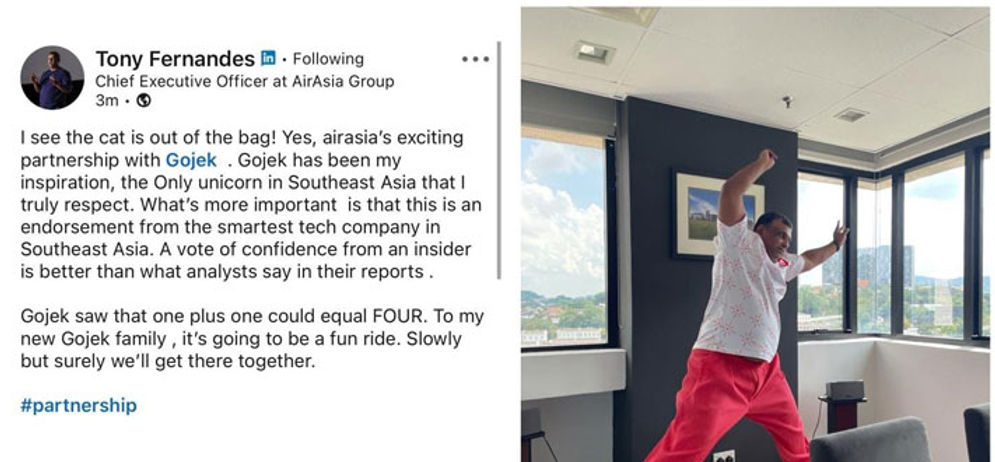 airasia Group CEO, Tony Fernandes, menyampaikan, bahwa pengumuman ini merupakan awal dari kemitraan strategis jangka panjang yang luar biasa dengan Gojek yang akan menggebrak industri. Dengan mengambil alih bisnis Gojek yang sudah mapan di Thailand, Tony berharap dapat mempercepat terwujudnya ambisi bisnis airasia untuk menjadi super app penantang terdepan di Asean.