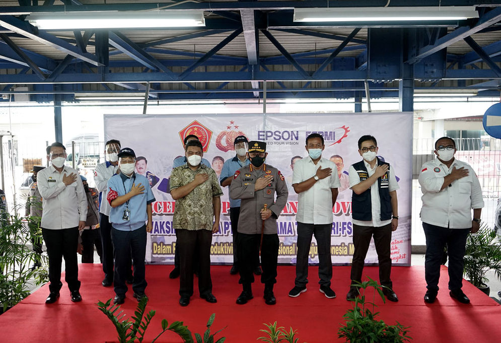 Vaksinasi hari ini, dilakukan terhadap 1000 orang karyawan Epson Indonesia. Vaksinasi tersebut merupakan hasil kerjasama antara Konfederasi Serikat Pekerja Indonesia (KSPI), Federasi Serikat Pekerja Metal Indonesia (FSPMI) dan Polri yang mewakili pemerintah, dengan biaya ditanggung oleh Epson Indonesia.