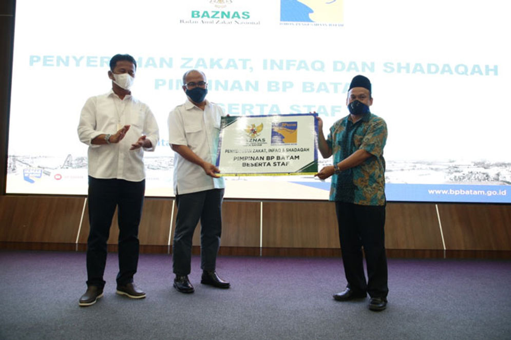 Penyerahan zakat profesi, infaq dan shadaqah dari Pimpinan beserta pegawai BP Batam dilakukan secara simbolis dari Wakil Kepala BP Batam, Purwiyanto, kepada Ketua BAZNAS Kota Batam, Muhith Marzuki, disaksikan oleh Kepala BP Batam, Muhammad Rudi.