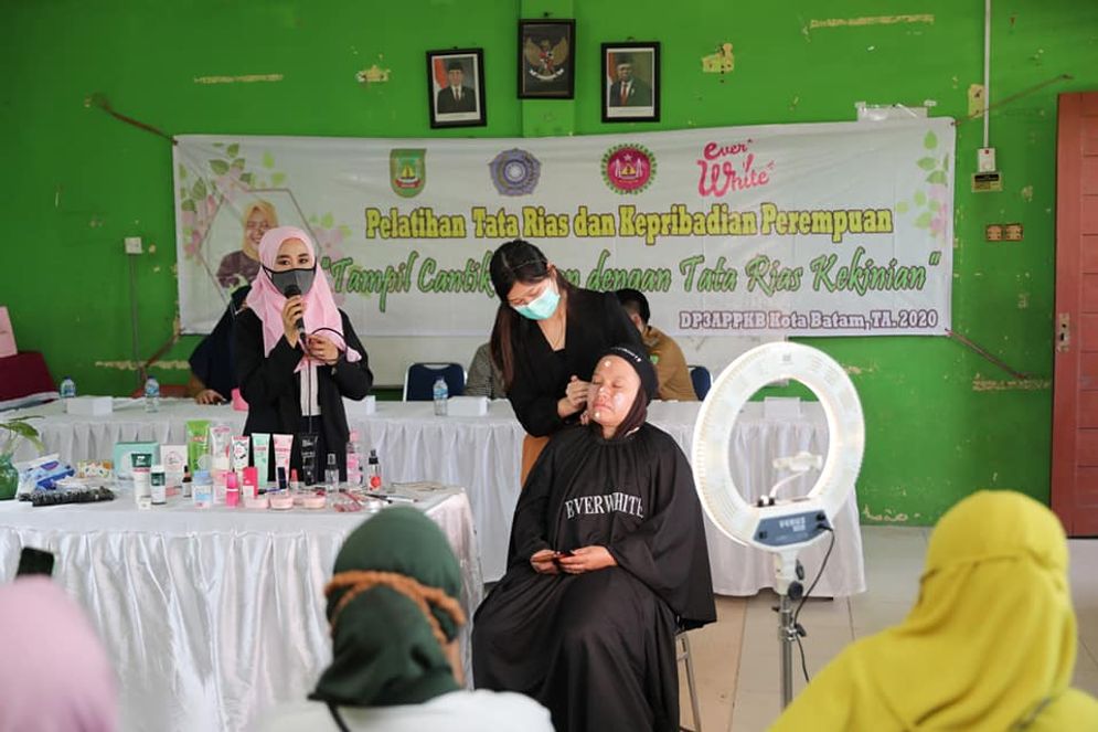 BATAM (sijori.id) -- Ketua Tim PKK Batam yang juga Ketua Gabungan Organisasi Wanita (GOW) Batam Marlin Agustina Rudi membuka Pelatihan Tata Rias dan Kepribadian Perempuan di SDN 001 Batuaji, Senin (14/12/2020) pagi. Kegiatan dihadiri perwakilan organisasi-organisasi perempuan Kecamatan Batuaji.