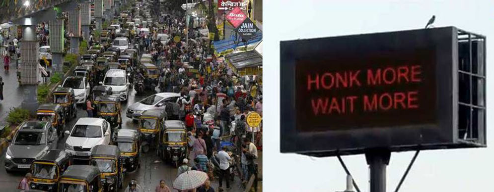 Dalam sebuah video yang viral, polisi Mumbai menyebut kota mereka sebagai “ibu kota klakson dunia”. Mereka menilai banyak pengendara justru membunyikan klakson saat lampu merah, seolah percaya bunyi itu bisa mempercepat perubahan lampu menjadi hijau.