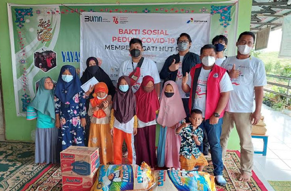 Pembagian paket sembako dan santunan ini ditujukan dalam rangka memperingati Hari Ulang Tahun Republik Indonesia yang ke-76. Kegiatan ini merupakan wujud kepedulian Pertamina Patra Niaga kepada masyarakat yang terdampak dari pandemi Covid-19.