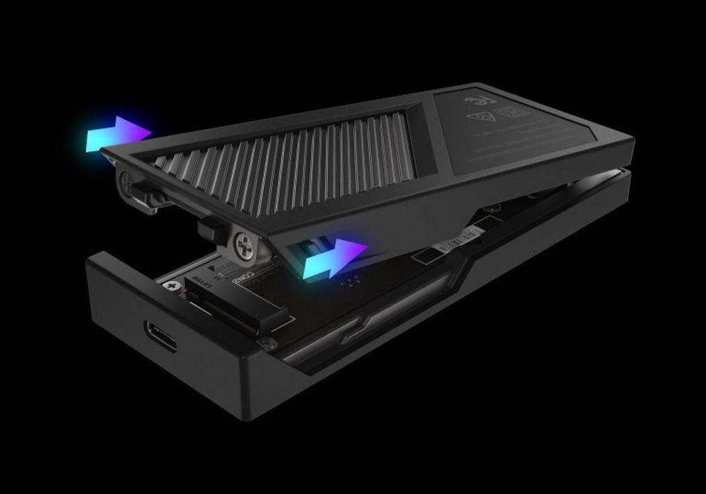 Perangkat ini juga menghadirkan pencahayaan Aura RGB yang dapat disesuaikan melalui antarmuka web, memberikan sentuhan visual khas ROG. Desain tanpa alat dengan mekanisme push-to-open memudahkan pemasangan atau penggantian SSD. Untuk mendukung mobilitas, Aiolos dilengkapi kait logam dengan tag kain yang dirancang lebih kuat dan praktis untuk dibawa bepergian.