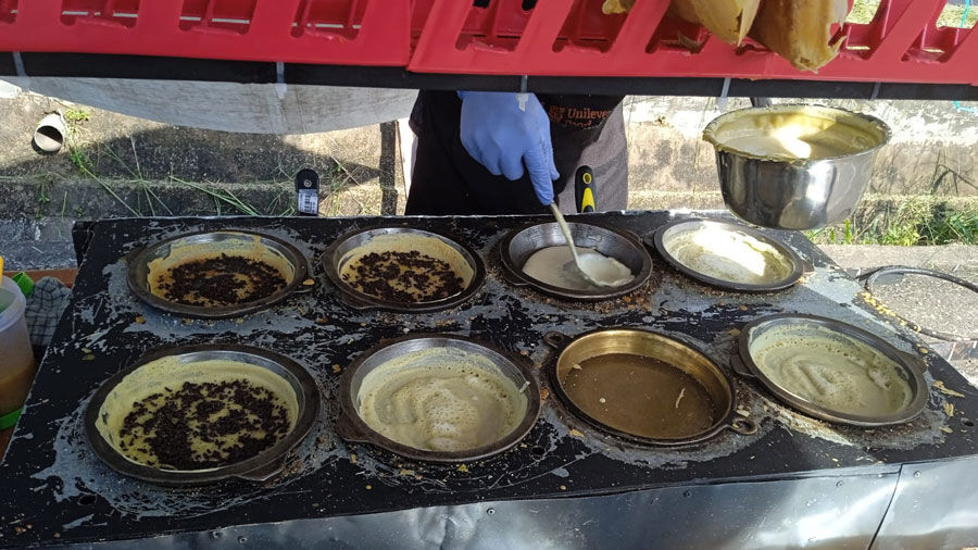 O iya, wajan yang digunakan sama dengan wajan untuk martabak manis / terang bulan. Bedanya Sang Penjual menggunakan wajan dengan diameter lebih kecil, sekira 15 centimeter.