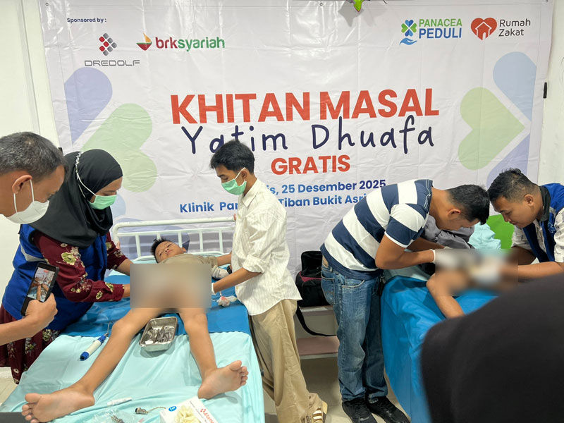 BATAM (sijori.id) — Sebanyak 40 anak yatim dan dhuafa mengikuti khitan massal gratis yang digelar Panacea Health Care bekerja sama dengan Rumah Zakat Kepulauan Riau di Klinik Panacea Tiban, 25 Desember 2025. Kegiatan sosial tersebut dirangkai dengan lomba mewarnai dan bazar UMKM yang melibatkan warga sekitar.